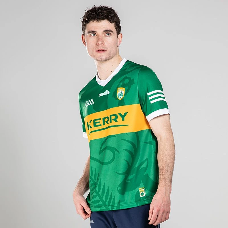 Cheer on Kerry with their latest home jersey. The Official Kerry GAA Home Jersey is made from our high-performance koolite fabric with catch, move and release nano-technology that transports moisture away from the skin. The jersey features the Kerry GAA crest and sponsor logo.